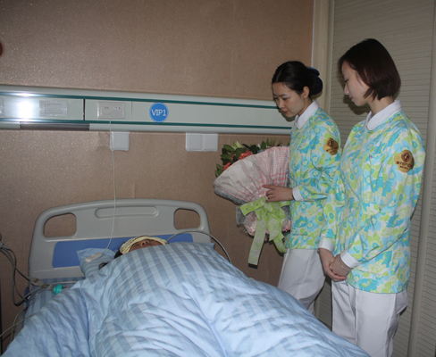 此时邱玉辉医生(产科住院部主任)和遂宁客服部的工作人员们抱着一个与超级宝宝相同时间出生的6斤重的婴儿走了进来。还真是不比不知道,一比吓一跳,余女士的儿子明显是XXL(超大)号的宝宝,因此大家都叫它“超级宝宝”。